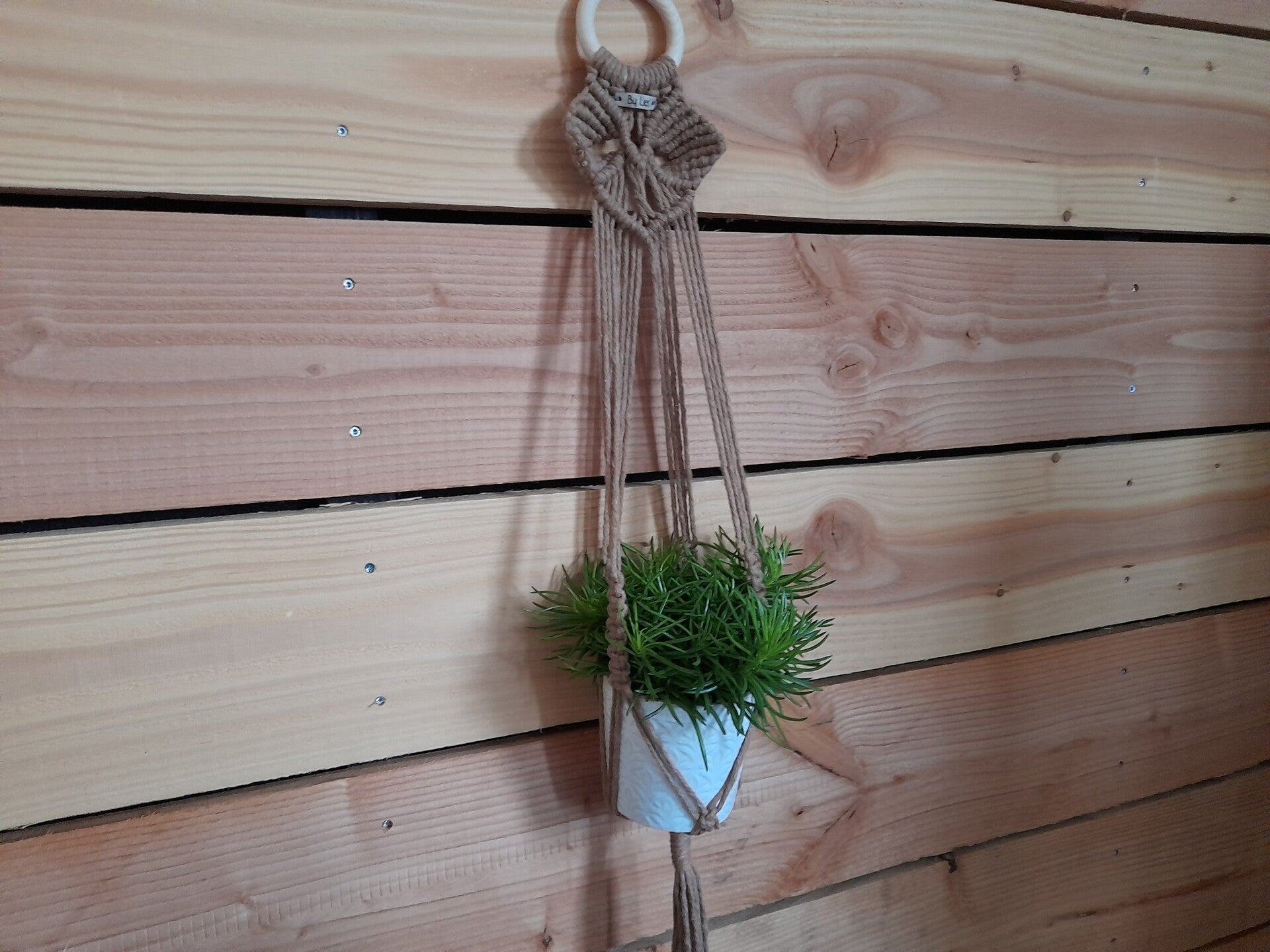 Mies is een leuke plantenhanger en is gemaakt van 100% gerecycled katoen. De houten ring is 8 cm in doorsnede